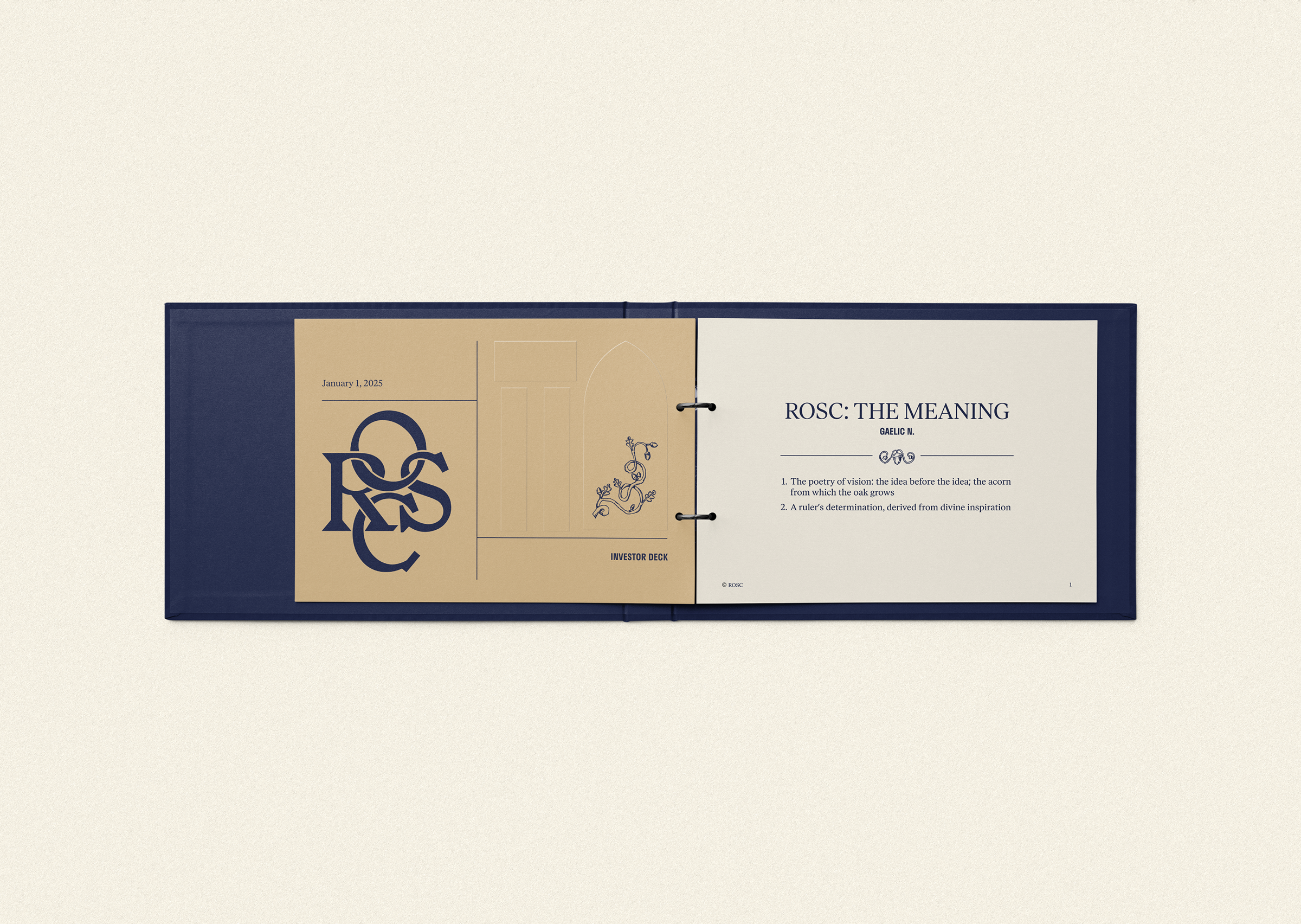Rosc is a venture capital fund built on a 40-year family legacy. At a moment when the VC world felt uncertain, they came to us seeking a brand identity that could honor their roots while stepping into the future. The goal: to stand apart from the sea of sameness with a design language grounded in academic rigor, trust, and a distinctly human approach to investing.